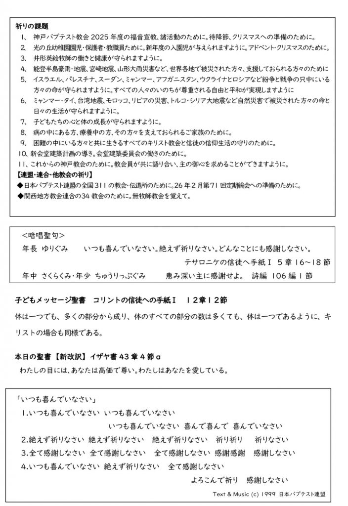 今年も、光の丘幼稚園と神戸教会のこどもさんたちを心にとめて、祝福を祈る礼拝を感謝します。また、保護者の方々の命を支える日々も覚えることができればと思います。