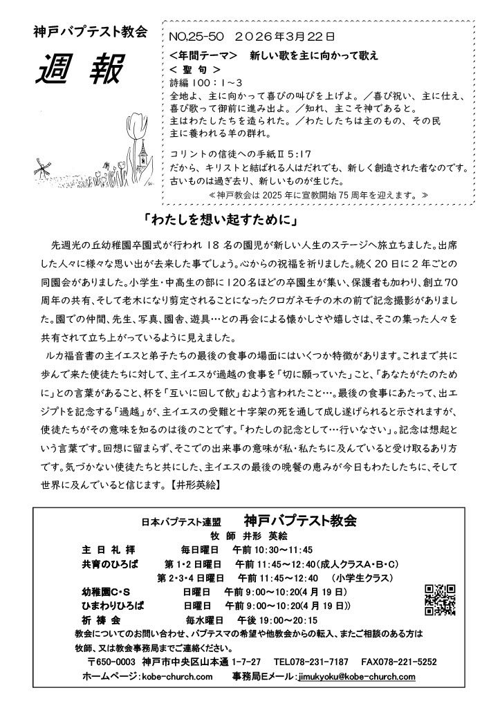 - 献金される方のお名前、献金の種類と金額を神戸バプテスト教会財務あてにメールでお知らせ下さい。 zaimu@kobe-church.com