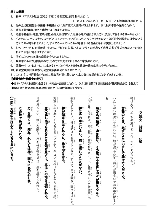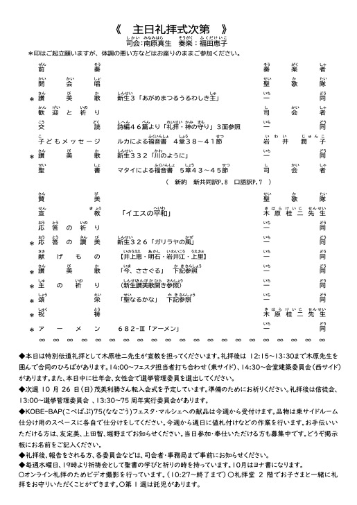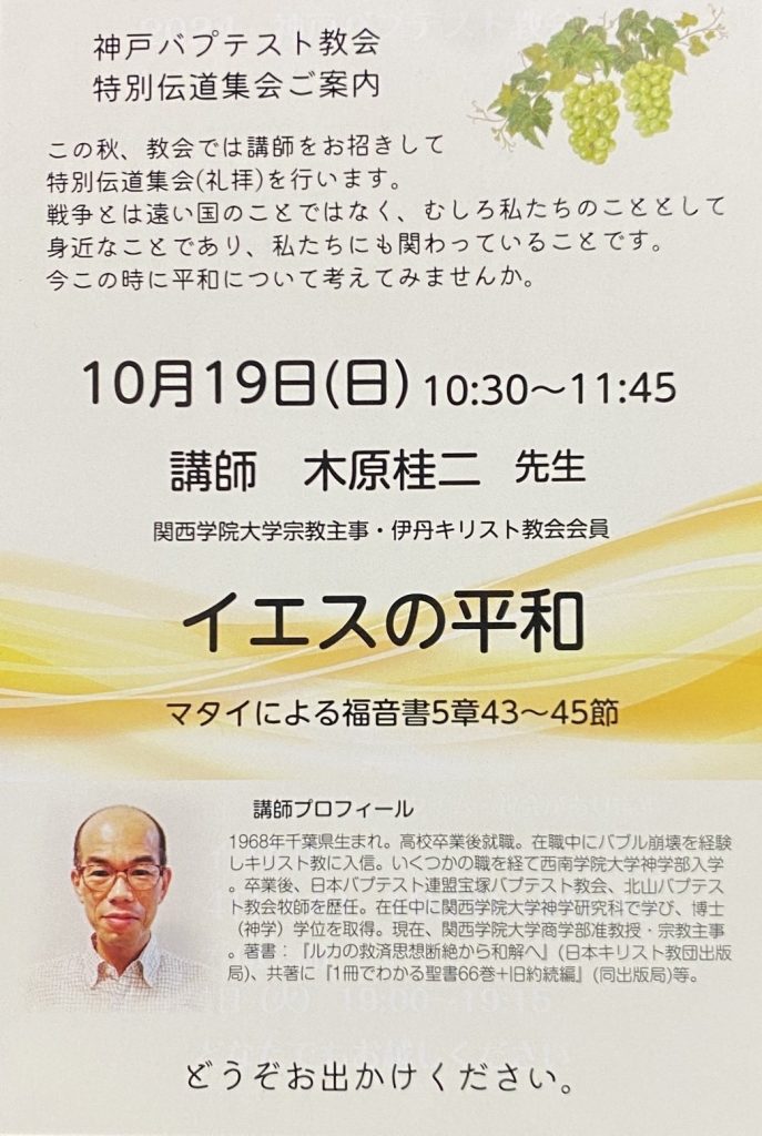 2025年10月19日(日) 特別伝道礼拝 10:30am~11:45am