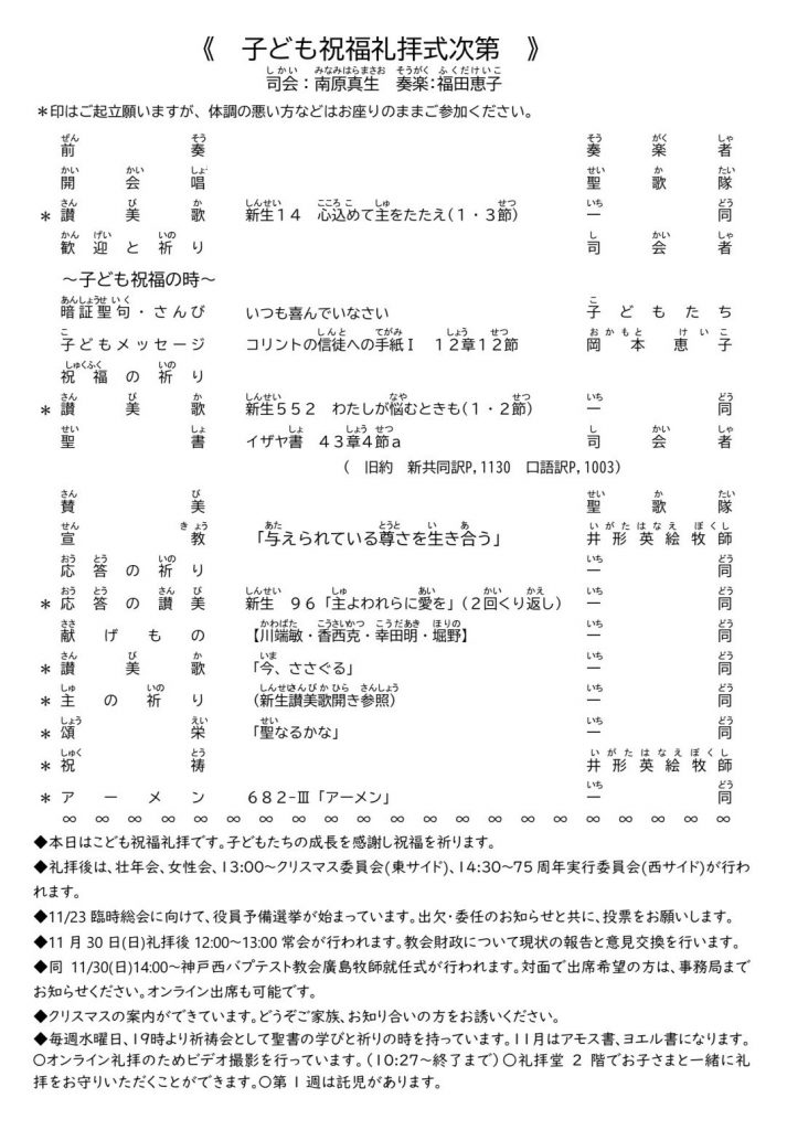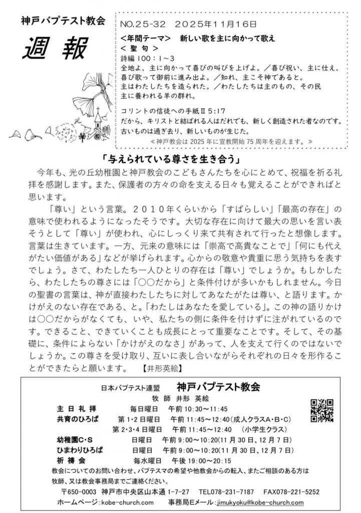 2025年11月16日(日) 主日礼拝 10:30am~11:45am