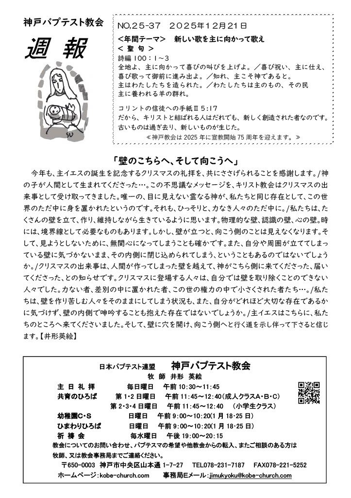 か。/クリスマスの出来事は、人間が作ってしまった壁を越えて、神がこちら側に来てくださった、届い