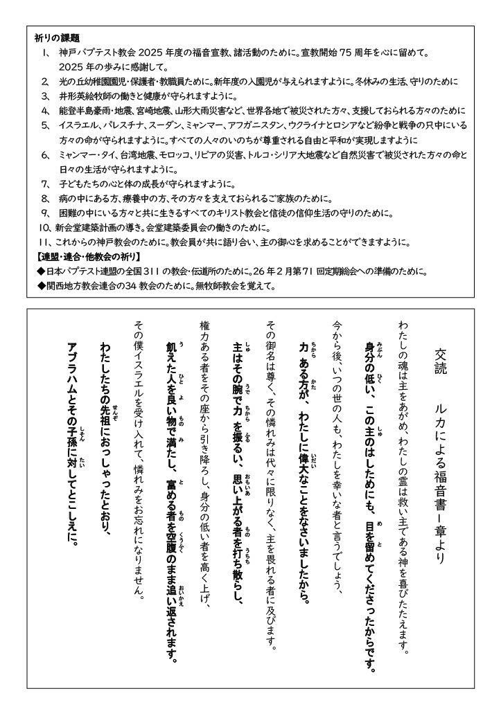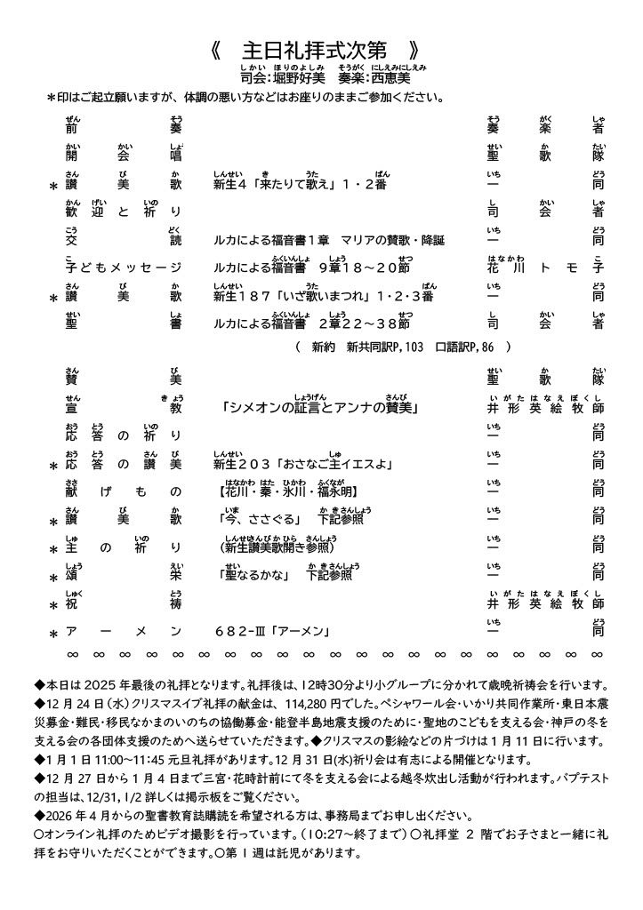 2025年12月28日(日) 主日礼拝 10:30am~11:45am