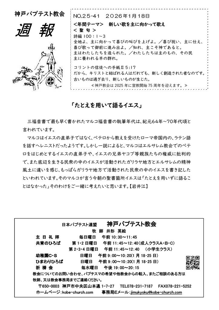2026年1月18日(日) 主日礼拝 10:30am~11:45am